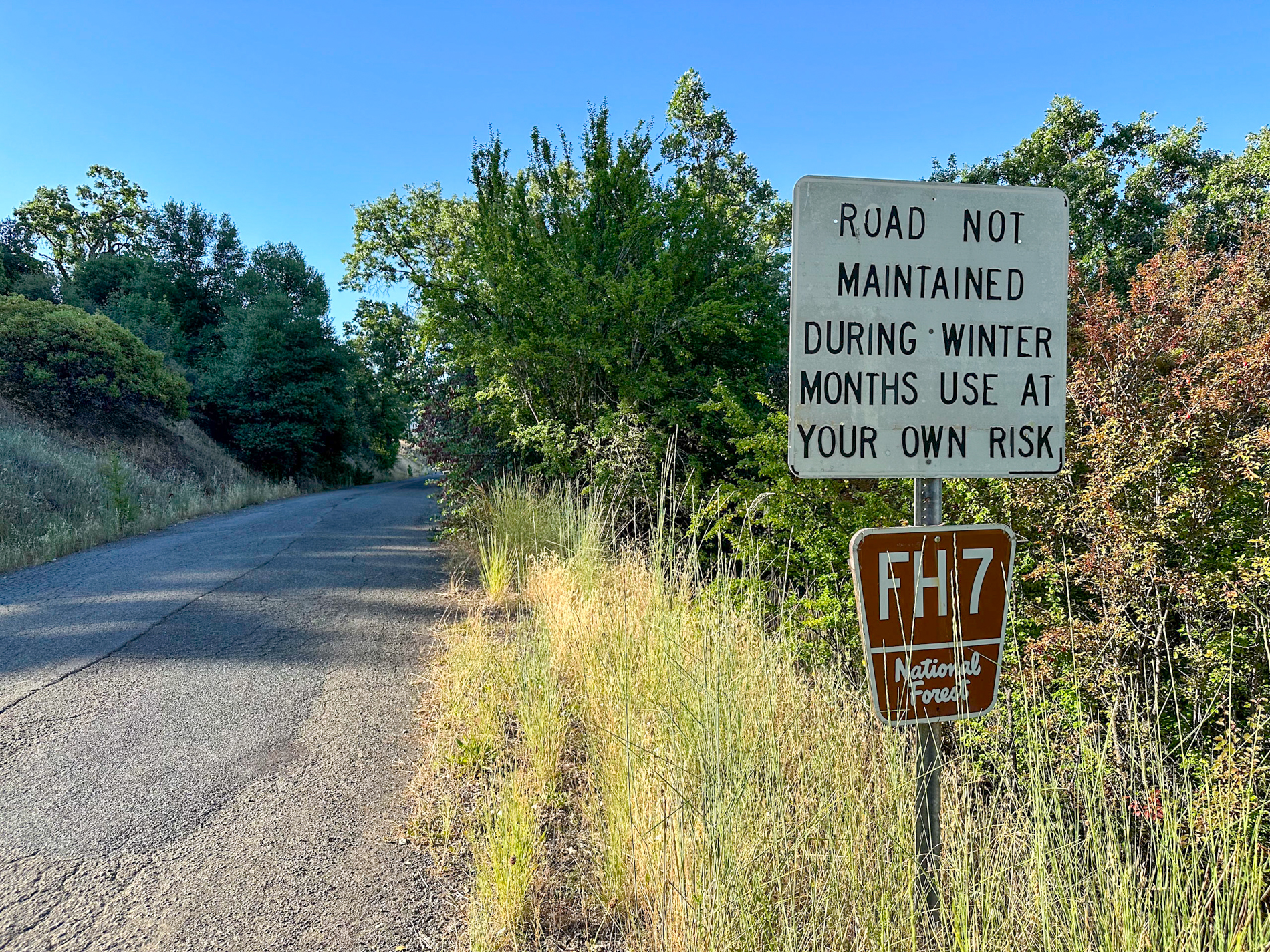 The route starts with a bang: a roughly 18-mile climb on Mendocino Pass Road (FH-7) on a steady six percent grade from 1,500 to 6,500 feet. I would stay on this road, connecting the Covelo in Mendocino County with Elk Creek and Willows in Sacramento Valley for most of the first day.