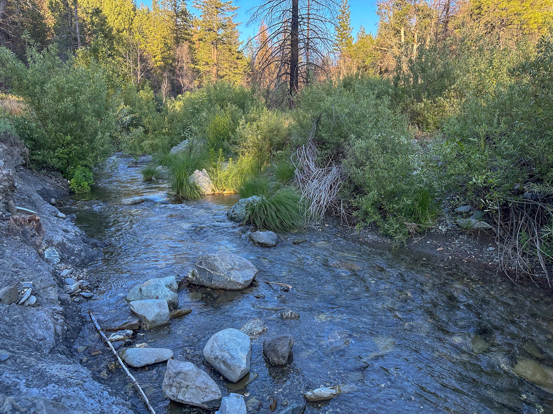 My forearms and triceps were burning, and my neck muscles were tiring from keeping my head upright on the bike. I finally reached the bottom of the canyon around 7pm. I crossed the free-flowing Estell Creek, which, not too much further down, merges with Middle Creek to form the Black Butte River. I set up camp next to the creek and stuffed my face with as much food as I could muster the energy to prepare after this challenging day. To the white noise of the water rushing past behind me, I fell into a deep slumber.